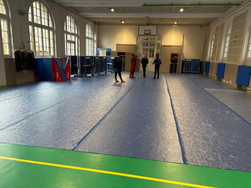 une moquette est intallee pour les élections municipales. La pratique est impossible pour aujourd'hui.